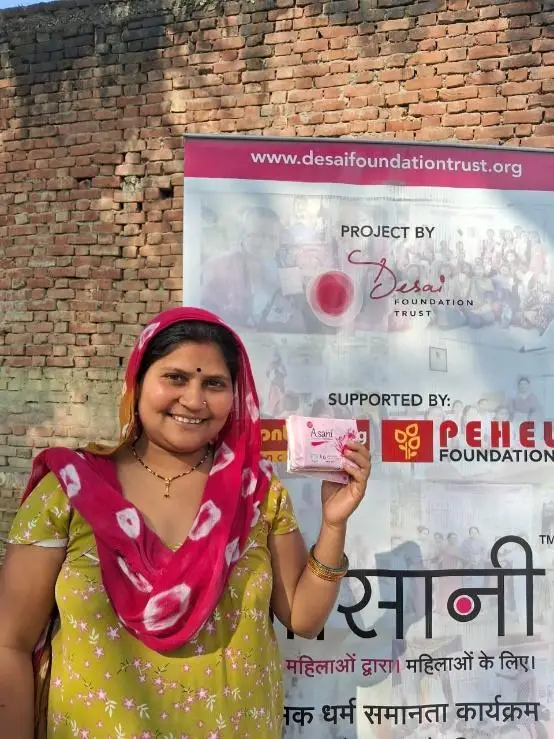 Apsaroon, a 25-year-old single mother from a conservative Muslim family, faced immense challenges after being abandoned by her in-laws just a year into her marriage. Living in a community where women are still veiled and restricted, she struggled to provide for her daughter. A year ago, Apsaroon joined the Asani project by the Desai Foundation during a time of desperation. She received training and began working in a production center, packing sanitary pads. This opportunity transformed her life and shifted her family’s attitudes. Her mother, initially resistant, supported her decision to join the project after Apsaroon explained the broader issues faced by women.